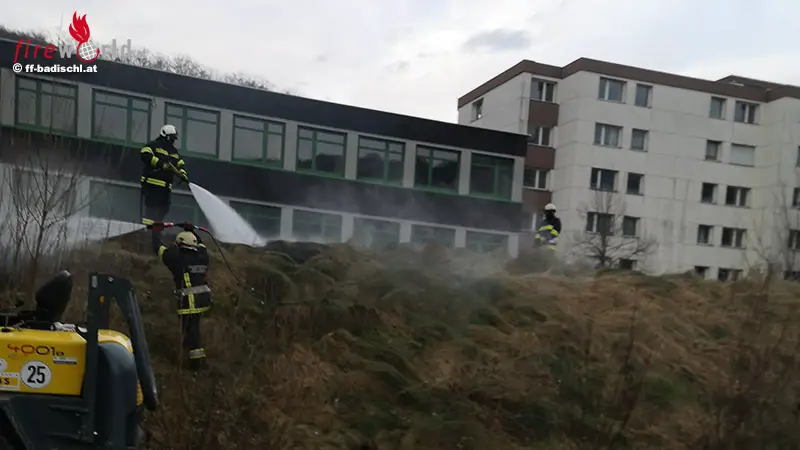 Bei der Anfahrt konnte man bereits eine große Rauchwolke erkennen. Am Einsatzort angekommen wurde ein begrünter Erdwall in Vollbrand vorgefunden. Umgehend wurde der Löschangriff durch Pumpe Reiterndorf, Tank Bad Ischl und Rüstlösch Bad Ischl begonnen. Die Wasserversorgung wurde durch eine Zubringerleitung von einem nahen Hydranten von den Kameraden der Feuerwache Reiterndorf sichergestellt.