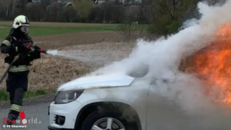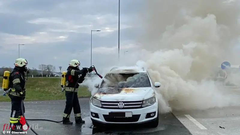 OBERWART (BGLD): Am Samstagvormittag, 17. April 2021, kam es zu einem Pkw-Brand in der Nähe der B63a in Richtung Messegelände Oberwart. Die FF Oberwart rückte um 09:15 Uhr mit 3 Fahrzeugen und 12 Mann zum Brandeinsatz aus.