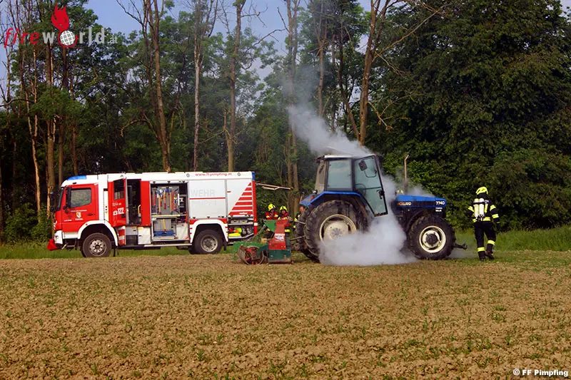 ANDORF (OÖ): Mit dem Einsatzstichwort „Traktorbrand auf Feld“ wurden die Feuerwehren Andorf und Pimpfing am 5. Juni 2021 von der oberösterreichischen Landeswarnzentrale alarmiert. Auf einem Feld in Humerleiten hat ein Traktor aus bislang ungeklärter Ursache im vorderen Bereich Feuer gefangen.