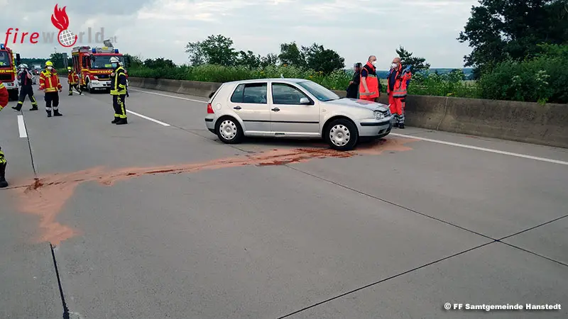Ein mit drei Personen besetzter VW Golf kam aus ungeklärter Ursache ins Schleudern, touchierte die rechte Leitplanke und blieb schließlich auf dem linken Fahrstreifen liegen. Die Feuerwehrkräfte der FF Ohlendorf, die sich zu diesem Zeitpunkt auf der Heimfahrt vom ersten Einsatz befanden, fuhren kurz hinter dem verunfallten Fahrzeug und konnten entsprechend sofort Erste Hilfe leisten und die Unfallstelle absichern.