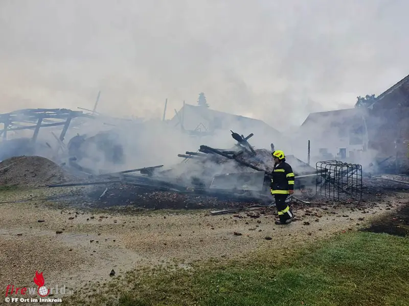 Oö: Heuselbstentzündung sorgt für Scheunenbrand in Mayrhof → Alarmstufe II mit 11 Feuerwehren