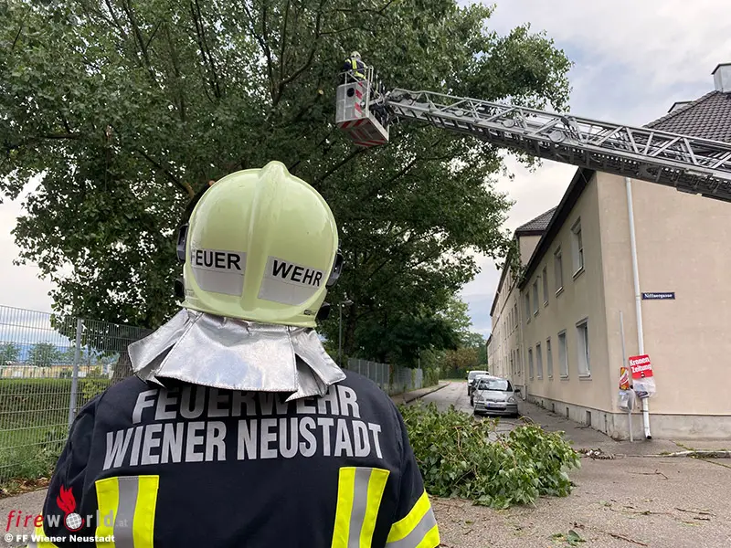 Bis Sonntag 10 Uhr früh mussten 34 Einsatzstellen durch die Freiwillige Feuerwehr Wiener Neustadt aufgrund des Unwetters der Nacht vom 31. Juli auf 1. August bewältigt werden. Unter Wasser stehende Tiefgaragen, Keller, Aufzugsschächte und auch durch Äste/Bäume blockierte Verkehrswege zählten zu den Einsätzen.