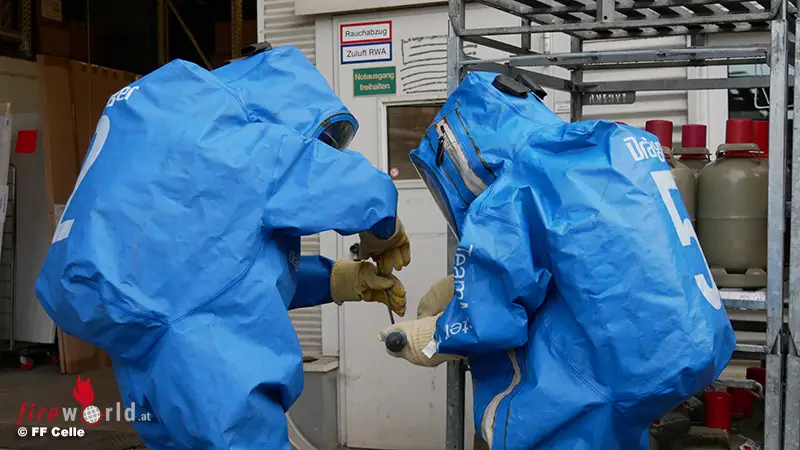 D: Chemie- Strahlenschutzzug der Feuerwehr Celle übt den Ernstfall in Baumarkt