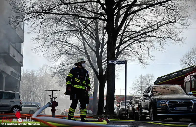 MÜNCHEN (BAYERN): Bei einem Brand in einer Autowerkstatt in der Albert-Roßhaupter-Straße in München wurde am frühen Nachmittag des 12. Februar 2022 ein 53-jähriger und ein 36-jähriger Mann jeweils leicht verletzt. Kurz nach 13 Uhr gingen mehrere Notrufe bei der Integrierten Leitstelle ein.