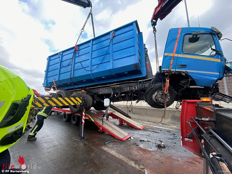 KORNEUBURG | LEOBENDORF (NÖ): Am Montag, den 7. März 2022, wurde die Feuerwehr Korneuburg um 11:50 Uhr zu einem schweren Lkw-Unfall mit einer eingeklemmten Person auf die S1, Richtungsfahrbahn Korneuburg, alarmiert.