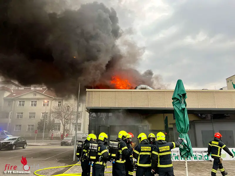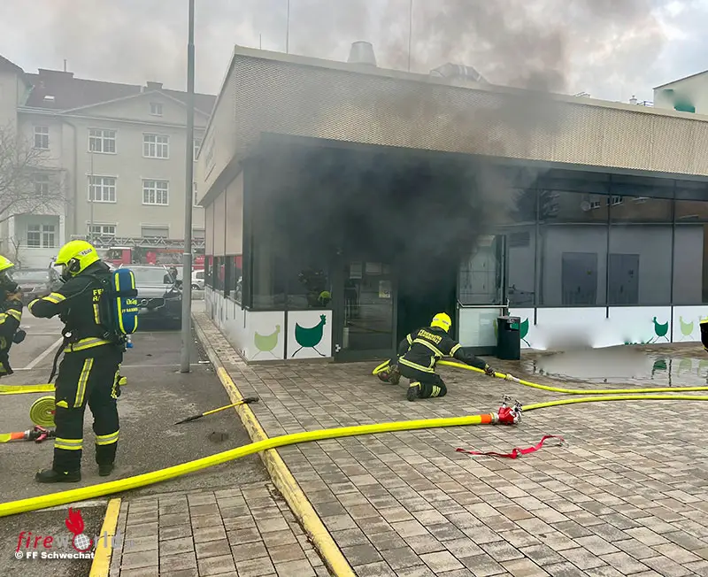 Nö: Ausbreitender Brand eines Imbiss-Lokals in Schwechat