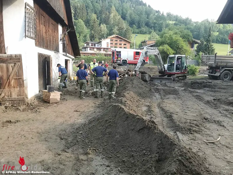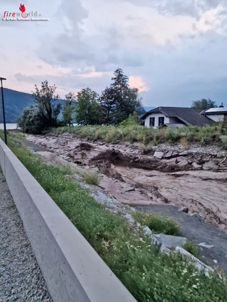 Nachdem bekannt wurde, dass sich die Wassermassen in Form einer Flutwelle aus den beiden Tälern Richtung Radenthein bewegten, wurden alle Feuerwehren der Stadtgemeinde Radenthein sowie auch die Wasserrettung Ferndorf und Döbriach alarmiert, um die Straßen und Brücken entlang der Bachläufe bis in den Millstätter See gemeinsam mit den Kräften der Polizei zu sperren und zu beobachten.