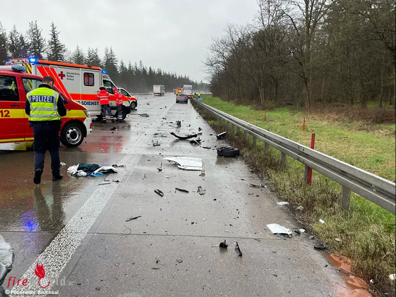 Der Rettungsdienst war unter der Leitung des organisatorischen Leiters Daniel Bauer mit einem Notarzteinsatzfahrzeug und zwei Rettungswagen vor Ort. Ein Bergeunternehmen hat die verunfallten Fahrzeuge aufgenommen und abtransportiert. Die Autobahn musste von zahlreichen Trümmerteilen gereinigt werden. Die Feuerwehr Bruchsal war unter der Leitung des stellvertretenden Feuerwehrkommandanten Martin Schleicher mit 35 Einsatzkräften bis kurz nach 11 Uhr im Einsatz.