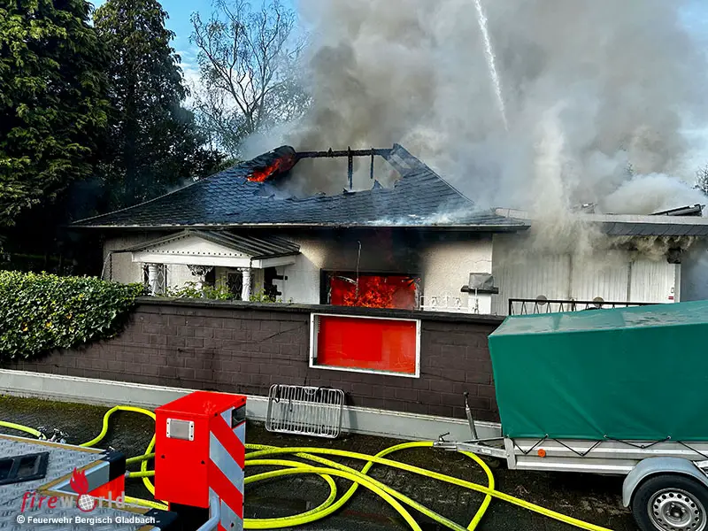 D: Wohnhaus brennt in Bergisch Gladbach → Feuerwehrmann bei Fahrradsturz schwer verletzt