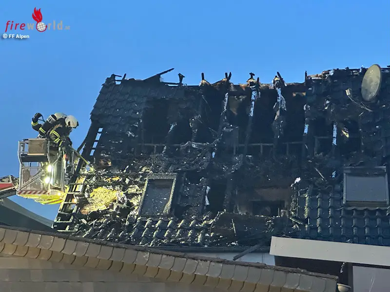 D: Ausgedehnter Brand eines Dachstuhls in Alpen