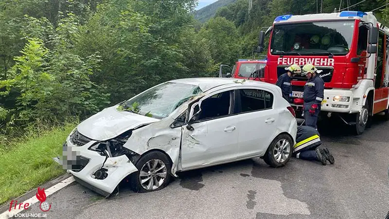 Nö: Pkw landet bei Unfall auf B 20 bei Türnitz im Buschwerk → Personenrettung