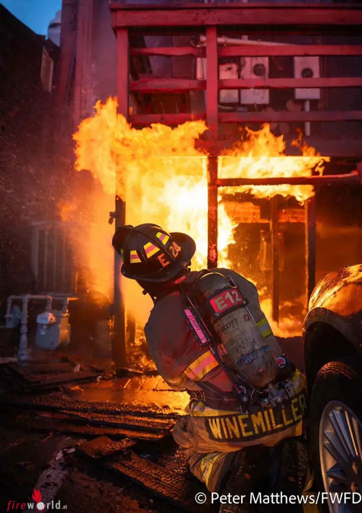 FORT WORTH (USA): Samstagabend, 5. August 2023, gegen 20:15 Uhr (Ortszeit) kehrte die Engine 2 der Feuerwehr von Fort Worth von einem Einsatz zurück und bemerkte ein bereits größeres Feuer, das die Rückseite der Cantina Cadillac Bar an der Exchange und Ellis verschlang.