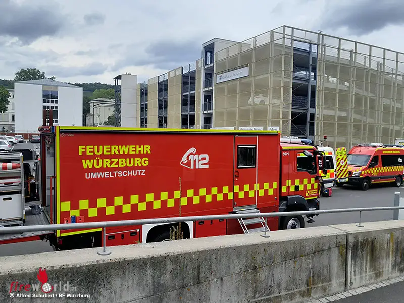 WÜRZBURG (BAYERN): Durch einen Austritt von Betriebsmitteln ist es am Sonntagnachmittag, 27. August 2023, zu einem Großeinsatz für Feuerwehr und Rettungsdienst am Klinikum Würzburg Mitte gekommen. Personen wurden nicht verletzt – es bestand keine Gefahr für Patienten und Personal.