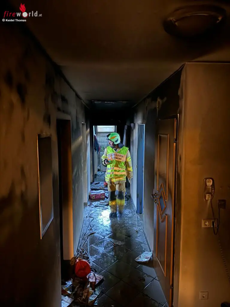 Glücklicherweise konnten sich zwei Personen, die sich zum Zeitpunkt des Brandes in der Wohnung aufhielten, rechtzeitig und eigenständig in Sicherheit bringen. Durch den Innenangriff von mehreren Atemschutztrupps konnte der Brand schnell unter Kontrolle gebracht werden. Um alle Glutnester zu löschen, mussten Teile der Wand und Decke geöffnet werden, und der gesamte Brandschutt wurde aus der Wohnung entfernt.