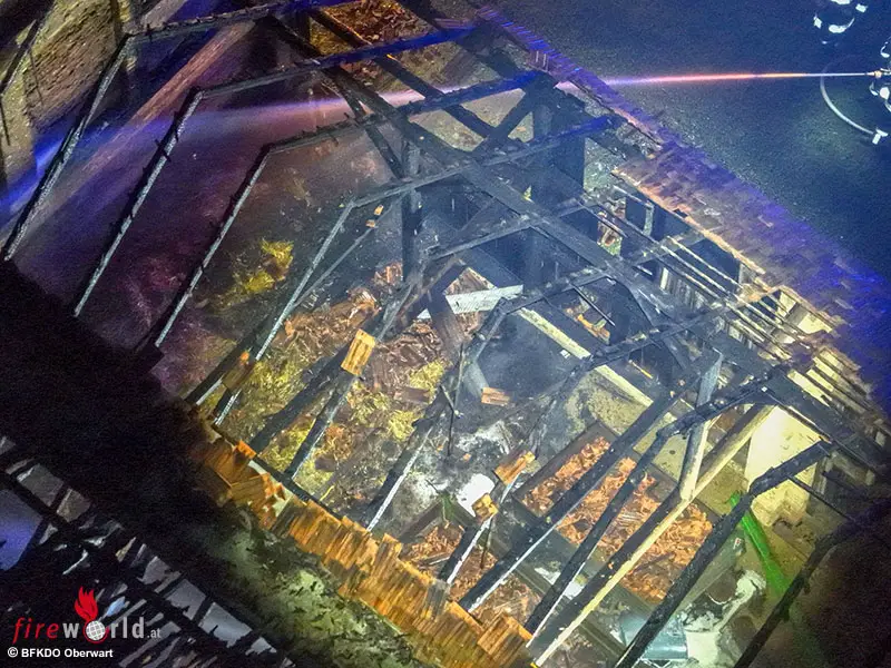 Rasch konnten die ersten Löschmaßnahmen durchgeführt und eine weitere Ausbreitung auf das Wohngebäude verhindert werden. Am Dachboden gelagertes Stroh erschwerte die Löscharbeiten. Um 01:30 konnte schließlich „Brand aus“ gemeldet werden.