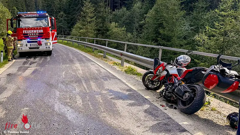 TAMSWEG (SBG): Am 11. August 2024 um 16:28 Uhr wurde die Hauptwache Tamsweg zu einem Motorradunfall auf der L262 (Preber-Landesstraße) alarmiert. Der Lenker eines Motorrads verlor in einer leichten Linkskurve die Kontrolle über seine Maschine und prallte gegen die Leitschiene.