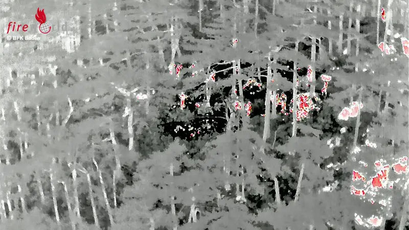 Für die Lageführung der Einsatzleitung stand auch eine Drohne der Feuerwehr mit Wärmebildkamera zur Verfügung. Über Nacht verblieb eine Brandwache mit Mitgliedern und Fahrzeugen von der FF Gainfarn und Großau vor Ort. In den frühen Morgenstunden rückten erneut einige Einsatzkräfte aus, um bei Tagesleicht die Einsatzstelle zu kontrollieren bzw. das genaue Ausmaß zu besichtigen. Hier galt es dann auch nochmals kleinere Nachlöscharbeiten in einigen Wurzelstockbereiche der betroffenen Bäume durchzuführen. Dieses war aufgrund der sehr hohen Eindringtiefe der Blitze zurückzuführen.
