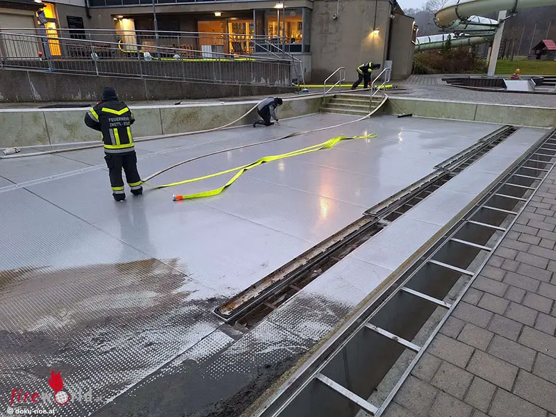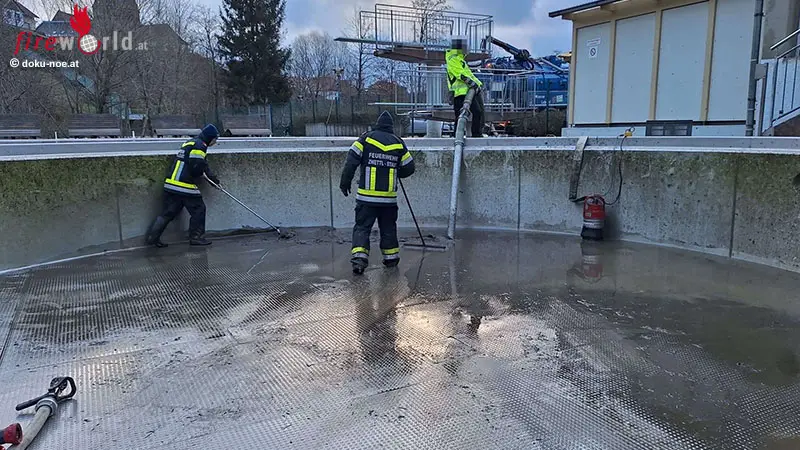 ZWETTL (NÖ): Die Hochwasserschäden vom September in der Region Zwettl halten die Einsatzkräfte weiterhin auf Trab. Am 20. und 21. November 2024 unterstützten Mitglieder der Freiwilligen Feuerwehr Zwettl-Stadt die Mitarbeiter des Zwettl-Bads bei der Reinigung der Außenbecken.