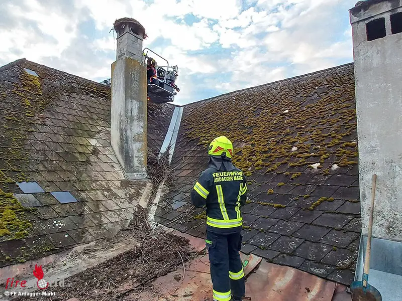 Nö: Feuerwehr in Ardagger bereitet Zuhause von Storchenpaar vor
