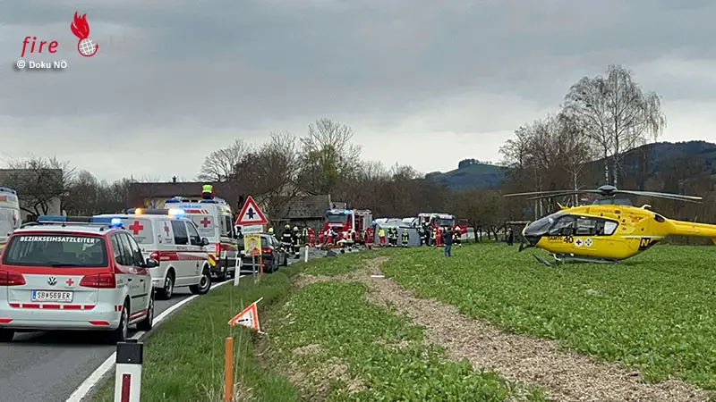 Der Mitfahrer im Kombi, ein 24-jähriger Mann aus dem Bezirk Scheibbs erlitt ebenfalls schwere Verletzungen und wurde mit dem Notarzthubschrauber in das Universitätsklinikum Krems an der Donau geflogen. Die beiden Mitfahrer in dem Klein-Lkw, ein 51-jähriger Mann aus dem Bezirk Melk und ein 20-jähriger Mann aus dem Bezirk Scheibbs erlitten Verletzungen unbestimmten Grades und wurden mit dem Rettungsdienst in das Landesklinikum Scheibbs verbracht. Die L 5247 war bis 16.30 Uhr für den gesamten Verkehr gesperrt. Eine örtliche Umleitung bestand.
