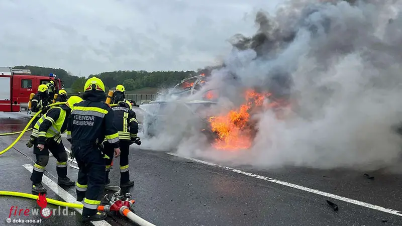 Ein Pkw geriet bei dem Unfall in Brand. Zunächst kollidierten fünf Fahrzeuge in Fahrtrichtung Wien. Eines dieser Fahrzeuge wurde gegen die mittlere Betonleitwand geschleudert und fing Feuer. Auch ein daneben stehender Wagen wurde vom Brand erfasst.