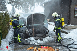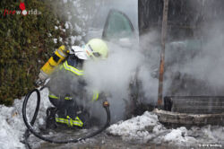 Noch vor dem Eintreffen der Einsatzkräfte versuchte der Besitzer des KFZ mit einem Pulverlöscher vergeblich die Flammen einzudämmen. Bei diesem Löschversuch stürzte der Mann wegen den winterlichen Bedingungen zu Boden und verletzte sich bei der Schulter.