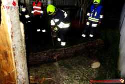 Bei Ankunft der Feuerwehr wurde festgestellt, dass ein Baum den vorherrschende, starken, Windböen nicht mehr standhielt und auf ein angrenzendes Garagendach stürzte. Nach dem Absichern und Ausleuchten der Einsatzstelle konnte der Baum mittels Kettensäge zerkleinert und händisch vom Gebäude entfernt werden. Die Feuerwehr Münchendorf stand mit LFA-B und TLF-A rund 40 Minuten im Einsatz.