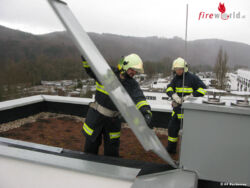 PUCHENAU (OÖ): „Blechdach droht abzustürzen“: So lautete die Alarmierung zum Sturmeinsatz am Samstag, den 10. Jänner 2015 gegen 09.00 Uhr, früh.