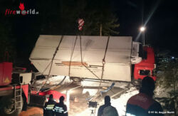 Der Lkw wurde mit der Seilweinde des Rüstlöschfahrzeuges zurückgesichert, mit dem Kranfahrzeug auf die Räder gestellt und anschließend an einen Abstellplatz neben der B21 geschleppt.