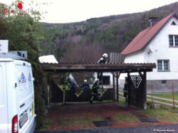 Mit der in Gloggnitz stationierten Drehleiter wurde in einem Industriebetrieb die örtliche Betriebsfeuerwehr unterstützt. In der Reichenauerstraße (B27), hatte der Sturm das Blechdach eines Carports teilweise abgetragen. Hier wurde das bereits lose Blech entfernt sowie weitere Sicherungsmaßnahmen durchgeführt. Kurzfristig wurde die B27 aus Sicherheitsgründen gesperrt. Nur wenige Meter entfernt mussten in einem Wohnhaus Dachziegel eingehängt werden. In der Zeit zwischen 15:15 und 17:00 Uhr standen insgesamt 13 Mitglieder und drei Fahrzeuge im Einsatz.