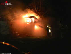 Nach nur wenigen Augenblicken konnten wir mit allen fünf Fahrzeugen vollbesetzt zum Einsatzort in die Tormäuerstraße ausrücken. Vor Ort wurde sofort die Alarmstufe erhöht und weitere vier Feuerwehren (Brettl, Lunz, St, Anton und Scheibbs) nachalarmiert. Ein Schuppen der direkt an ein Wohngebäude und an eine Garage angebaut war stand in Vollbrand. Durch den sehr starken Funkenflug war die Gefahr der Brandausbreitung sehr groß. Die ersten Atemschutztrupps fingen sofort mit der Brandbekämpfung an. Zeitgleich wurden von einem nahegelegenen Hydranten sowie von einem Bach, Wasser zum Brandobjekt gepumpt. Durch den raschen Einsatz konnte das übergreifen auf die angrenzenden Gebäude verhindert werden und der Brand unter Kontrolle gebracht werden. Insgesamt waren sechs Feuerwehren mit 75 Einsatzkräften und 17 Fahrzeugen im Einsatz. Ebenfalls im Einsatz war das Rote Kreuz Gaming mit einem Rettungstransportwagen.