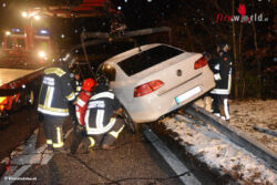 Ein mit zwei jungen Männern besetzter slowakischer Pkw kam bei der Ausfahrt des Autobahnparkplatzes Weissenbach aus noch unbekannter Ursache von der Fahrbahn ab und fuhr auf die ansteigende Leitschiene auf. Das Fahrzeug kam schräg auf der Leitschiene zum Stillstand. Beide Insassen blieben unverletzt. Mittels Kranfahrzeug wurde der neue VW Passat von der Leitschiene gehoben und abtransportiert. Nach rund einer Stunde konnte der Einsatz beendet werden.