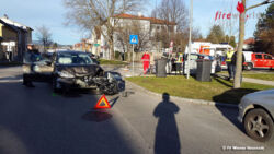 WIENER NEUSTADT (NÖ): Zum technischen Einsatz rückte die Feuerwehr Wiener Neustadt am Dienstagvormittag, 13. Jänner 2015, aus. Im Kreuzungsbereich Marktgasse – Gymelsdorfergasse wurden zwei Personen bei einem Verkehrsunfall verletzt.