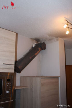 Danach wurde mittels WBK die unmittelbare Umgebung kontrolliert. Da keine Gefahr mehr ausging und um den Wasserschaden so gering wie möglich zu halten, lies man das Rohr danach von alleine auskühlen. Mit Hilfe des Turbelüfters wurde die Wohnung vom Rauch befreit. Nach ca. 1 Stunde konnten die Mitglieder der FF St. Peter wieder ins Zeughaus einrücken.