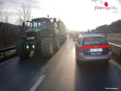 Die Pkw-Lenkerin wurde bei dem Unfall leicht verletzt und von der Rettung ins KH Friesach eingeliefert. Der Traktorlenker blieb unverletzt. Die B317 war für die Dauer der Unfallserhebungen und der Bergung der Fahrzeuge für den gesamten Verkehr gesperrt. Die Aufgaben der Feuerwehren waren die Straße für den Verkehr wieder frei zu machen und die ausgelaufenen Betriebsmittel zu binden.