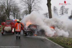 Auf regennasser Fahrbahn kam er, vermutlich infolge von nicht angepasster Geschwindigkeit, in einer Rechtskurve ins Schleudern und prallte frontal gegen einen Straßenbaum. Der Fahrer wurde mit den Beinen im Fahrzeug eingeklemmt und der Pkw geriet sofort in Brand. Der Fahrzeugführer konnte durch andere Verkehrsteilnehmer und eintreffende Polizeibeamte der Polizeistation Aerzen, die gemeinsam als mutige Ersthelfer vor Ort einschritten, gerade noch aus dem Fahrzeug gezogen werden, bevor der Pkw komplett in Brand geriet. Der Fahrzeugführer wurde mit schweren Verletzungen mit einem Rettungshubschrauber in die Medizinische Hochschule Hannover zur weiteren Behandlung geflogen.