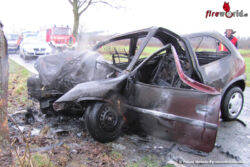 Ein 53-jähriger Ersthelfer erlitt einen Schock und musste wegen des Verdachts auf Rauchgasvergiftung ebenfalls in ein Krankenhaus verbracht werden. Der Verdacht bestätigte sich jedoch nicht und er konnte das Krankenhaus nach ambulanter Behandlung wieder verlassen. Am Auto entstand Totalschaden.
