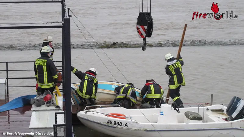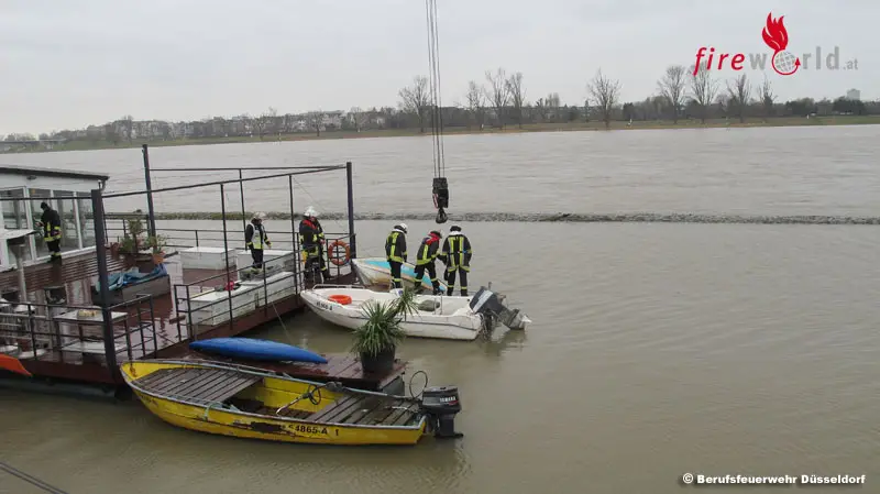 DÜSSELDORF (DEUTSCHLAND): Am Vormittag des 15. Jänner 2015 wurde die Feuerwehr Düsseldorf von der Wasserschutzpolizei zu einem gesunkenen Motorboot im Sporthafen am Robert-Lehr- Ufer zur Unterstützung hinzugerufen.