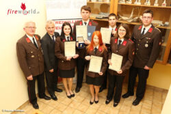 Beförderung zum Feuerwehrmann: Clara Zwingl, Laura Martin, Michelle Schallagruber und Oliver Weber