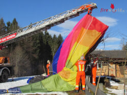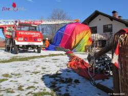 Eigentlich wollte ein Ballonfahrer seinen Heißluftballon auf einer Wiese im Ortsteil Gschwandt sicher landen. Was soweit fast geglückt ist – wenn sich dabei nicht die Ballonhülle in einem nahen Baum verfangen hätte. Guter Rat war also gefragt, um die feine Hülle wieder beschädigungsfrei vom Baum zu bekommen. Die gerufenen Feuerwehren Bad Goisern und Ramsau konnten jedoch rasch Hilfe leisten: Mittels Drehleiter konnte über die schneebedeckte Wiese zugefahren werden und sodann gelang es, die empfindliche Ballonhülle sorgsam und ohne weitere Beschädigungen aus dem spitzen Geäst zu bergen.