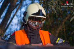 Die Alarmmeldung, mit der die Freiwilligen von Zuhause, von Geburtstagsfeiern oder von Freunden zum Feuerwehrhaus gerufen wurden, lautete; TH1, Ausleuchten für Polizei, Treffpunkt Parkplatz A27. Bereits auf der Anfahrt wurde gegrübelt, was einen wohl erwartet – einen schweren Verkehrsunfall, bei der die Polizei zur Ermittlung der Unfallursache Licht benötigt? Unterstützung bei der Suche von vermissten Unfallbeteiligten? Weit gefehlt – es sollte ein Wildschwein gesucht werden.