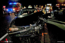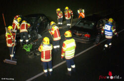 Bei Eintreffen der Feuerwehr fanden die Einsatzkräfte zwei Pkw vor, die frontal zusammengestoßen waren. Eine Person wurde bei dem Frontalzusammenstoß unbestimmten Grades verletzt und vom Roten Kreuz in ein umliegendes Krankenhaus abtransportiert.