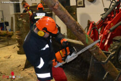 MAUERKIRCHEN (OÖ): Sturmschäden halten die Einsatzkräfte der Feuerwehr en Land auf Land ab immer wieder auf Trab. Bei Windwürfen kommt es im Regelfall dazu, dass Feuerwehrmänner und –frauen mit Motorkettensägen umgefallene oder gar verspannte Bäume schneiden müssen. Besonders Bäume die unter Spannung stehen bergen große Gefahren.