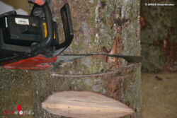 - Station zwei widmete sich dem Entnehmen eines Keils aus einem Stamm mit großem Durchmesser und dem Herzstich.
