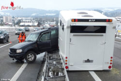 OBERBÜREN (SCHWEIZ): Am Sonntag, dem 25.01.2015, ist auf der Autobahn A1 auf der Höhe Oberbüren kurz nach 13:30 Uhr ein Auto mit einem Pferdetransportanhänger verunfallt.