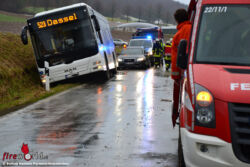 STADTOLDENDORF (DEUTSCHLAND): Auf der Kreisstraße 44 zwischen Wangelnstedt-Denkiehausen (Samtgemeinde Eschershausen-Stadtoldendorf / Landkreis Holzminden) und Dassel-Mackensen (Landkreis Northeim) rutschte gegen 07.50 Uhr des 27. Jänner 2015 ein mit 58 Kindern und Jugendlichen besetzter Bus in einen Straßengraben