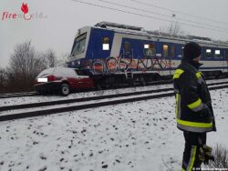 DEUTSCH-WAGRAM (NÖ): Am 27. Jänner 2015 wurde die Feuerwehr Deutsch-Wagram um 6.56 Uhr zu einer Fahrzeugbergung auf die Nordbahnlinie S1 Richtung Wien gerufen. Ein Auto wurde hier von einer Schnellbahngarnitur erfasst.
