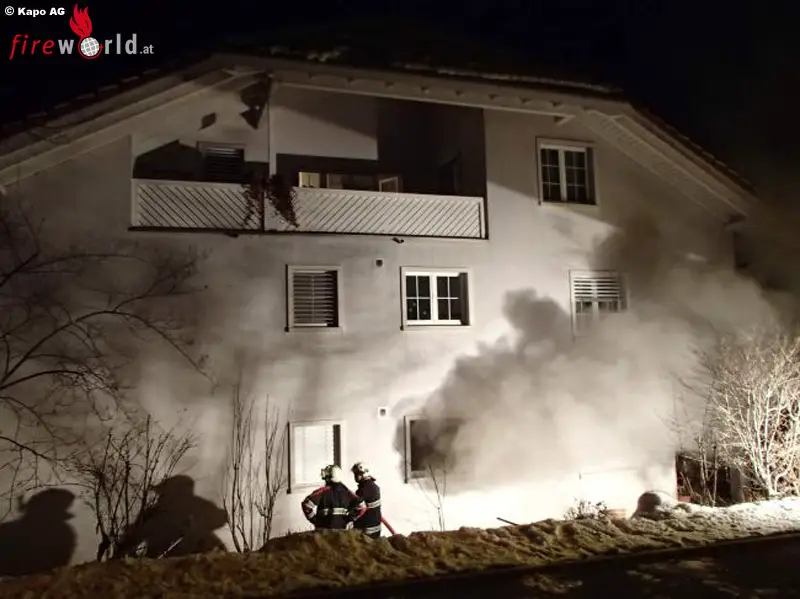 LEUTWIL (SCHWEIZ): Nach einem Brandausbruch in einem Wohnhaus in Leutwil füllte sich am Morgen des 26. Jänner 2015 ein Treppenhaus komplett mit Rauch. Die Bewohner konnten alle gerettet werden.
