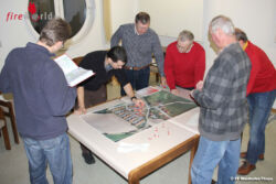 Dieses Führungsverfahren muss regelmäßig geübt werden – dieses Mal mittels Planspiel. Hauptbrandinspektor Ing. Andreas Altrichter (Kommandant der FF Vestenpoppen-Wohlfahrts) konnte als Übungsleiter für dieses Planspiel gewonnen werden. Das Feuerwehrkommando, Zugs- und Gruppenkommandanten sowie weitere eingeteilte Mitglieder der Einsatzleiterliste nahmen an dieser Übung teil. An zwei Abenden wurde den Einsatzleitern auf großformatigen Luftbildaufnahmen (Ausschnitte des Stadtgebietes Waidhofen/Thaya) diverse Einsatzszenarien durch den Übungsleiter vorgegeben. Aufgabe war es diese Szenarien in der Theorie zu bewältigen – begonnen von der Lagefeststellung über die Planung bis hin zur Befehlsgebung. Die Übungsteilnehmer (LM Manfred Astner, EHBI Franz Böhm, OBI Otto Nehrer, HBI Ing. Karl Oberbauer, OV Thomas Pfabigan, HBI Herbert Pfeiffer, VM Ing. Karl Prokupek, FT Ing. Edwin Wandl, HBM Alois Zmill und LM Gerald Zmill.) konnten bei dieser Theorieübung viele Erkenntnisse für die Praxis mitnehmen, um auch im Ernstfall die richtigen Entscheidungen rasch treffen zu können.