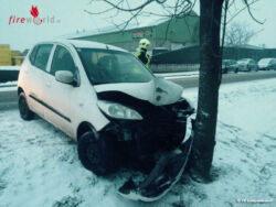 Nö: Pkw kracht im Ortsgebiet gegen Baum